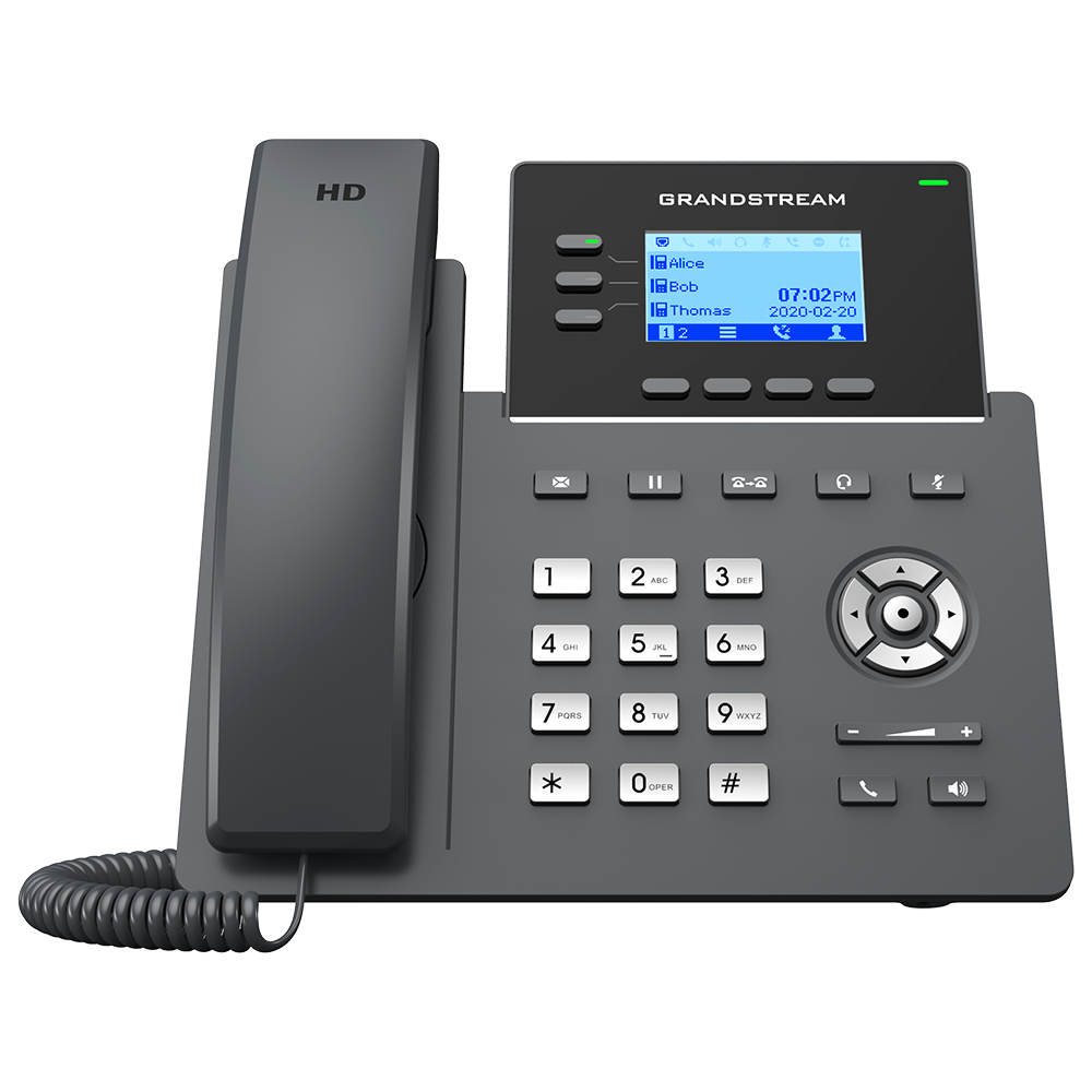گوشی گرنداستریم GRP2603 یک تلفن ویپ با خط حامل 3 خطه است که با تأمین لمس صفر برای استقرار گسترده و مدیریت آسان طراحی شده است. این یک طراحی زیبا و مجموعه ای از ویژگی های نسل جدید از جمله: کنفرانس صوتی 4 طرفه برای به حداکثر رساندن بهره وری، PoE یکپارچه (GRP2603P)، صدای کاملا HD در بلندگو و گوشی به شما امکان می دهد تا کاربران با حداکثر وضوح صحبت کنند.